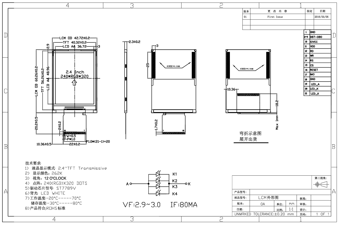 Het voordeel van TF als Chinese fabrikant is het betrouwbaar leveren van goedkope, op maat gemaakte LCD's van hoge kwaliteit. De 2,4'' actieve matrix kleine TFT LCD-displaymodule is geïntegreerd met het krachtige ST7789V-driver-IC. Met een QVGA-resolutie van 320×240 pixels levert het scherpe en kristalheldere beelden.